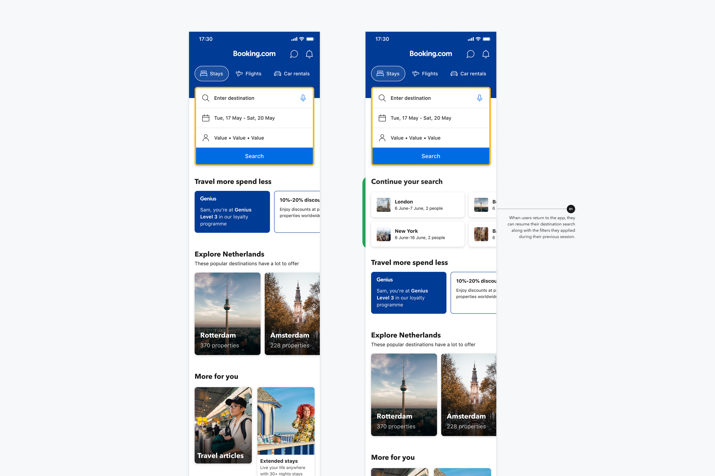 Help users seamlessly pick up where they left off across all verticals — saving time, reducing friction, and enabling more confident trip planning.